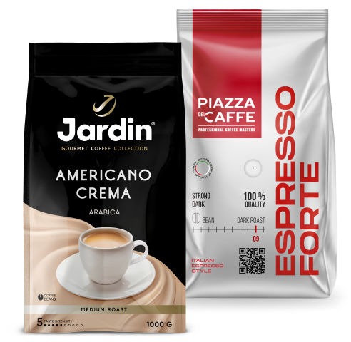 В Акции участвует зерновой кофе Jardin в упаковках 1 000 г. и зерновой кофе Piazza del Caffe в упаковках 900 г. и 1000 г.